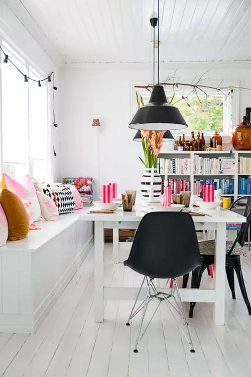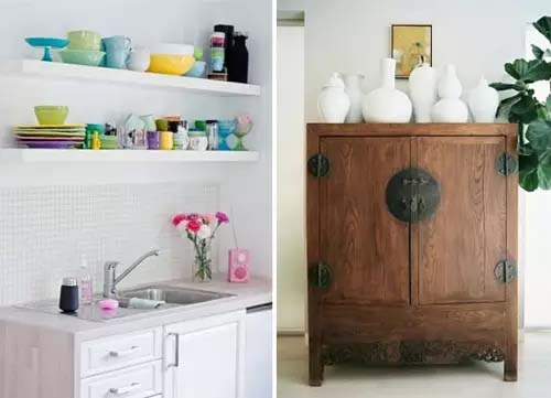 Those tiny bottles and jars can also give a space a sense of shape. Arranging them in categories not only gives the room an artistic touch, but also looks very natural and uncontrived. It’s a smart and chic room decorating idea.